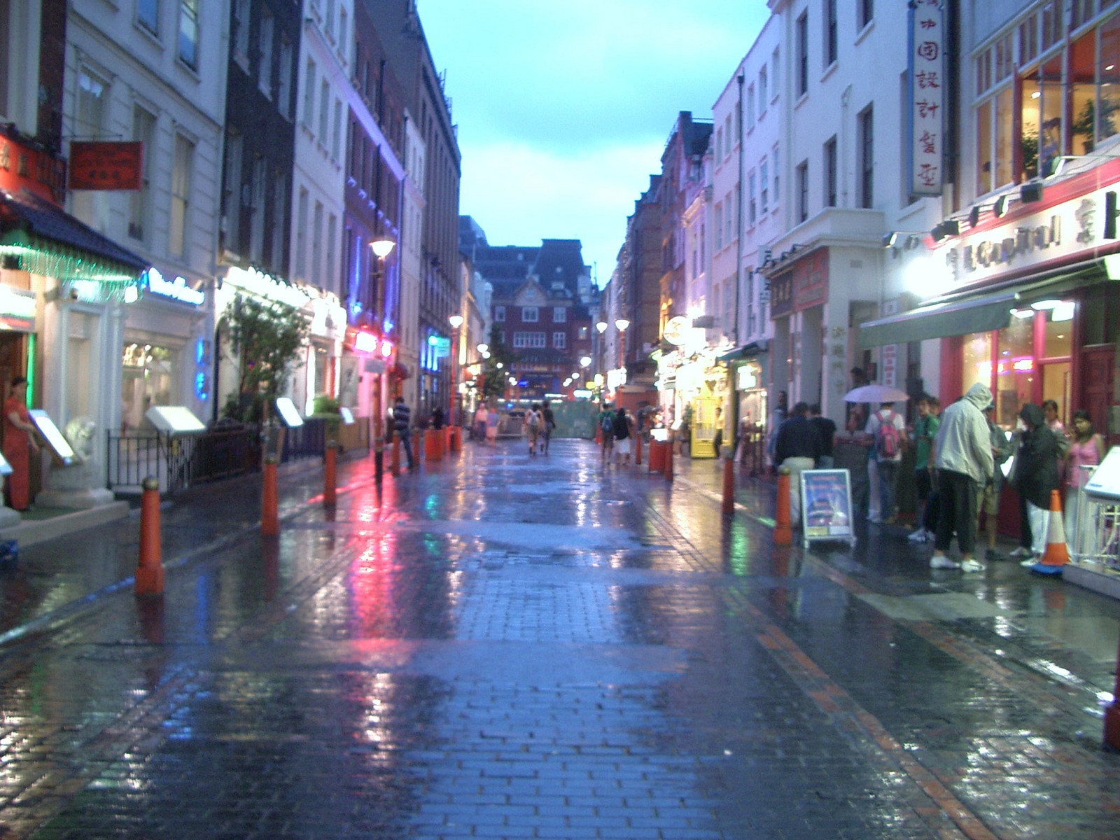 Muggy humid rain hits chinatown and makes everything shine