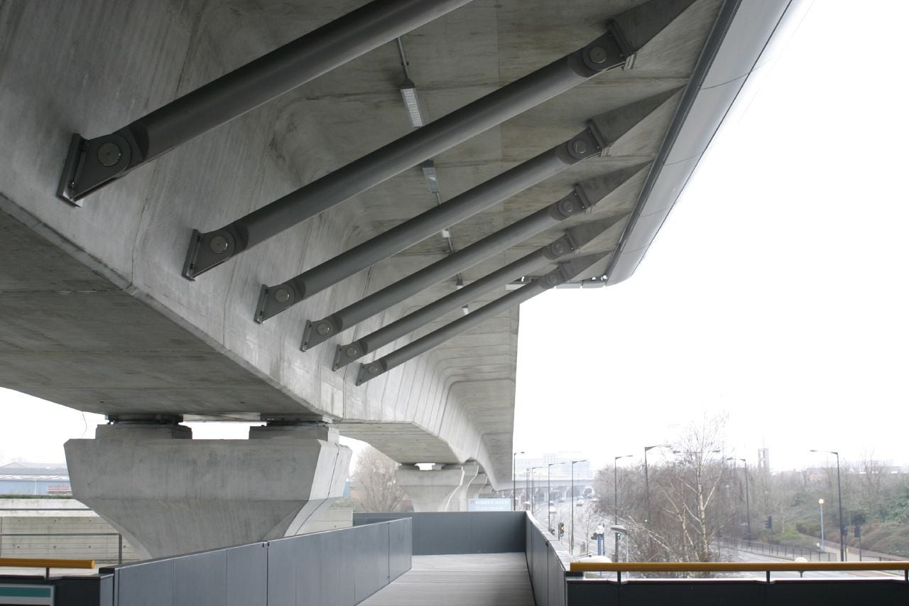 The underside of the DLR at Pontoon Dock. Purty. Looking towards London