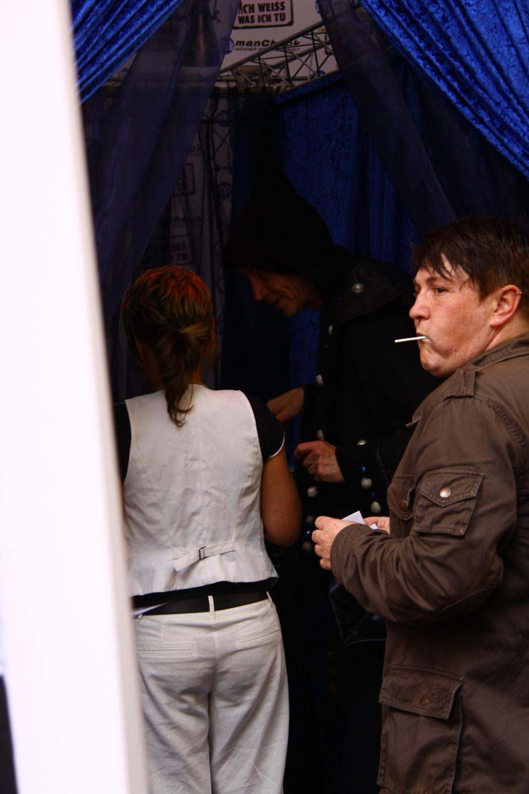 Can't really see him, but a wizard in velvet divining someone's future. Silly pointy hat.