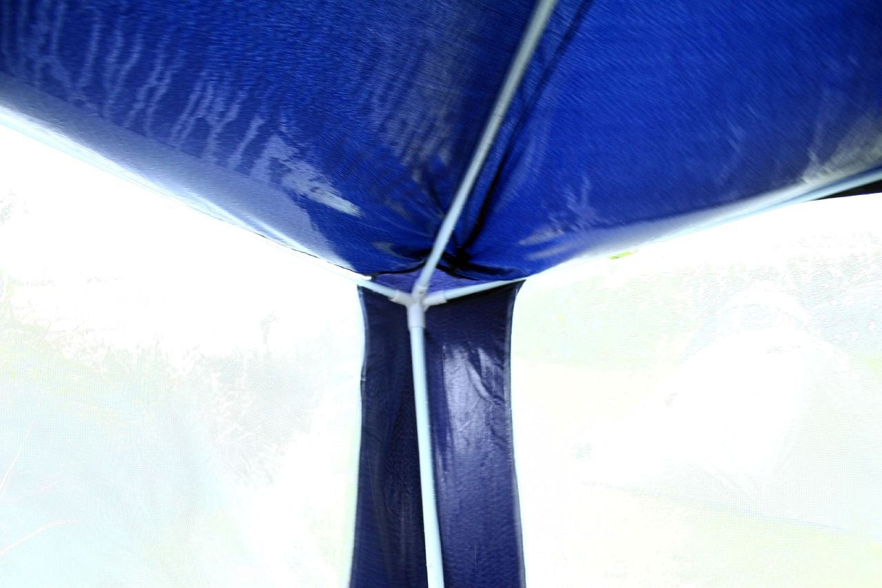 The gayzbo was meant to be able to withstand a small shower. It managed around 24 hours of being upright before breaking into tiny pieces and collapsing. My tent suffered a similar fate. Maybe I shouldn't spend a whole £25 on a tent from Sainsbury and expect it to work in a gale.