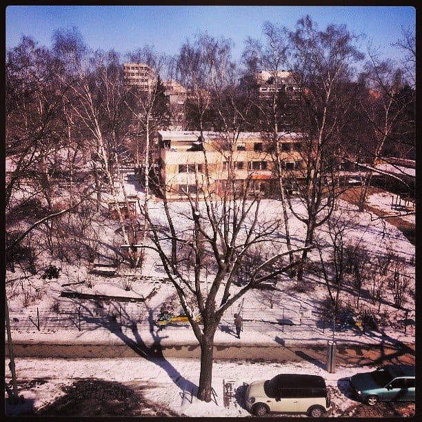 Sunny and snowy.